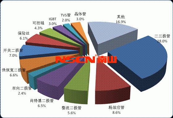 通過圖(4)可以看出,目前半導(dǎo)體分立器件用戶需求較多的二三極管,而且年度采購需求量非常旺盛。隨著電子整機(jī)、消費類電子產(chǎn)品等市場的持續(xù)升溫,半導(dǎo)體 分立器件仍有很大的發(fā)展空間,從發(fā)展趨勢看,無論是全球還是中國,分立器件在電子信息產(chǎn)品制造業(yè)中銷售額度所占比例正在逐步下降,分立器件產(chǎn)量和產(chǎn)值的增 長速率要低于整機(jī)系統(tǒng)的增長速率。另一方面,整機(jī)系統(tǒng)的快速發(fā)展,也為分立器件行業(yè)提供了新的市場商機(jī)。特別是全球電子整機(jī)對節(jié)能、環(huán)保需求的不斷增長, 這一方面帶動了分立器件產(chǎn)品的需求增長,另一方面也帶動了市場產(chǎn)品結(jié)構(gòu)的快速升級。整機(jī)系統(tǒng)進(jìn)一步向小型化、集成化方向發(fā)展的趨勢,對分立器件也提出了新 的要求,片式貼裝器件已經(jīng)成為行業(yè)發(fā)展的主流。
