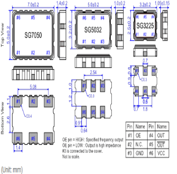 2.目前市場主流差分晶振都是6腳貼片封裝,常見的尺寸有3225,7050和5032。頻率比普通晶振相比較高,可以從50MHz到700MHz.常用的頻率有:74.25MHz,100MHz,125MHz,148.5MHz,150MHz,200MHz等一般價格相比普通常用晶振也貴一些。