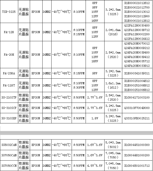 上圖是愛普生24mhz晶振的一些常見型號,愛普生晶振的品牌和市場占有率不用多說,大家可以去查一下,市場上有許多山寨的晶振打著愛普生晶振的旗號在出售,所以大家可以自行官方去查下,哪些是真正的代理,哪些有愛普生在線銷售權(quán),南山電子除了以上貼片晶振24m以外,還提供其他各種型號有源晶振無源晶振時鐘芯片,溫控壓控晶振等,歡迎各位新老顧客來電垂詢,或者直接到我們某寶店——南山E店直接購買。