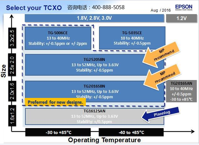 雖然說溫補(bǔ)晶振既無恒溫電路,也無感溫頭,焊接歪曲是有可能的,但也不是這樣粗制濫造的啊,這還是高精度元件嗎?愛普生溫補(bǔ)晶振相比其他的在-40~﹢85℃下穩(wěn)定提供0.5ppm的高精度,這樣子的明顯是市場(chǎng)上流出的山寨貨,大家一定要注意,切勿貪小便宜吃大虧,下面我們來看下愛普生溫補(bǔ)晶振幾款主力型號(hào)選型示意圖: