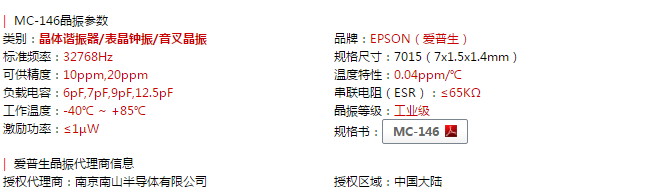 有以上MC-146的選型信息,相信大家可以很輕松的根據(jù)規(guī)格參數(shù)做出滿意的選擇,作為愛普生晶振在中國大陸地區(qū)授權(quán)的核心代理商南京南山半導(dǎo)體有限公司提供EPSON全系列溫補(bǔ)晶振產(chǎn)品,想找尋MC-146廠家或者其他晶振相關(guān)產(chǎn)品可點(diǎn)擊網(wǎng)站右上方在線購買,或者去我們南山電子的某寶店——南山E店選型訂貨。