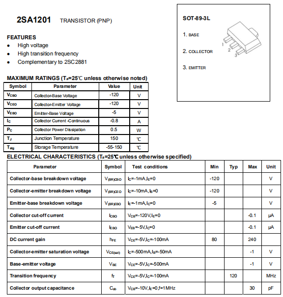 大家好,今天來(lái)介紹下三極管2sa1201,2sa1020。說(shuō)到這很多客戶就要問(wèn)了這兩者為何放在一起比較,其實(shí)是有一件趣事,上周我們客服收到一位老客戶咨詢,他說(shuō)要2sa1020一盤,然后放大倍數(shù)120-240,也沒(méi)說(shuō)封裝就付了款,因?yàn)樗琴Q(mào)易經(jīng)常來(lái)拿貨,既然說(shuō)了2sa1020和放大倍數(shù),那就應(yīng)該沒(méi)錯(cuò)就2sa1020  TO-92L 120~240  絲印A1020 041 這顆長(zhǎng)用料,客戶收到貨后,跟我們要求換貨,原來(lái)他要的居然是2sa1201,不過(guò)說(shuō)起來(lái)這兩者光看型號(hào)確實(shí)容易混淆,但是2sa1201貼片三極管,而2sa1020直插三極管,這就有點(diǎn)無(wú)語(yǔ)了,其實(shí)他當(dāng)時(shí)如果說(shuō)下封裝,我們就可以立馬反應(yīng)過(guò)來(lái) 比如他說(shuō) SOT-89封裝,那我們就會(huì)知道應(yīng)該不是2sa1020,而是2sa1201。這位老客戶也說(shuō)了他是當(dāng)時(shí)忙暈了,他知道是2sa1201,卻打字打成2sa1020。我們也幫他辦理了換貨,下面南山電子就詳細(xì)給大家分享下2sa10202sa1201的規(guī)格書