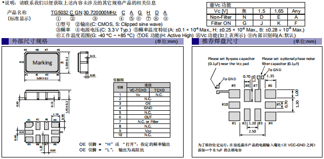 TG5032CGN,TG5032SGN壓控溫補晶振該如何識別?
