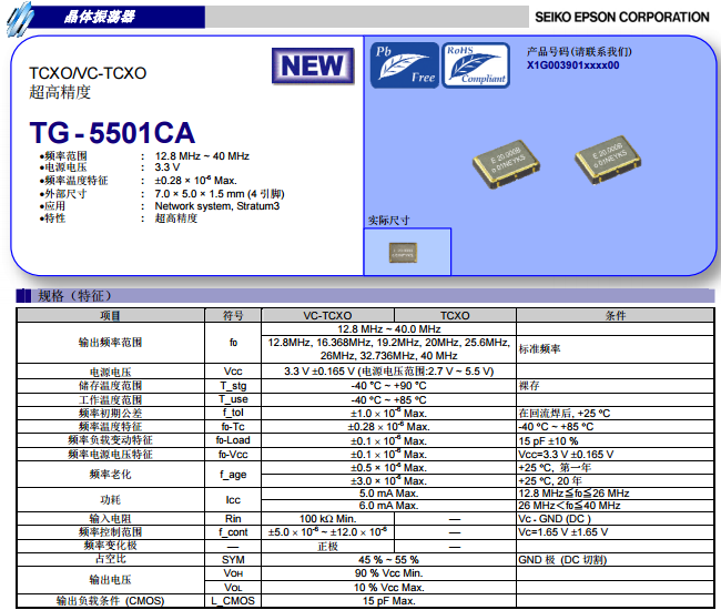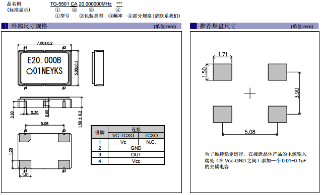 TG-5501CA規(guī)格,TG-5501CA溫補晶振,TG-5501CA