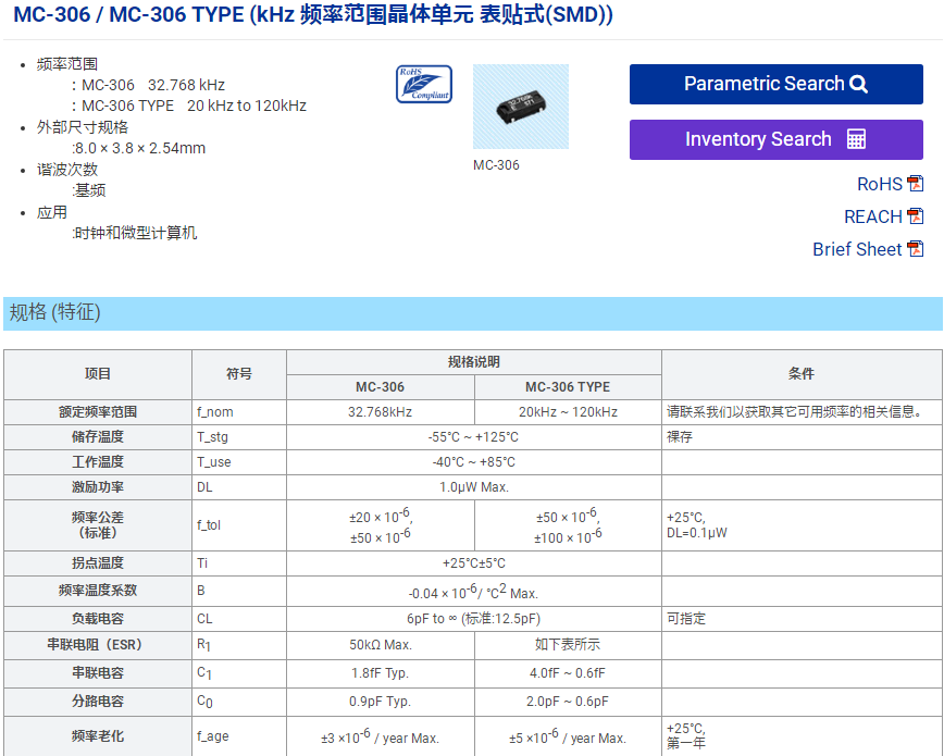 今天來介紹下無源晶振MC-306,晶體諧振器MC-306,屬于愛普生無源晶振,表晶32.768K,MC-306同時(shí)也提供20kHz~120kHz范圍內(nèi)的頻率定制。相較于MC-146,MC-306尺寸略大。在32768hz工作頻率下具有較小的串聯(lián)電阻(20kΩ Max.)。MC-306常用的負(fù)載電容MC-306 6pF,9pF,12.5pF等等。MC-306廣泛應(yīng)用于小型便攜式通信設(shè)備,時(shí)鐘和微型計(jì)算機(jī)如手機(jī)、GPS模塊、FM調(diào)諧模塊PHS、PDA、數(shù)碼相機(jī)、、Zigbee、血糖值測(cè)量?jī)x、信用卡結(jié)算機(jī)、各種微機(jī)的預(yù)備 時(shí)鐘、無繩電話、移動(dòng)設(shè)備、電表等儀器設(shè)備等。下面南山電子給大家詳細(xì)的介紹下愛普生MC-306同系列晶振型號(hào):