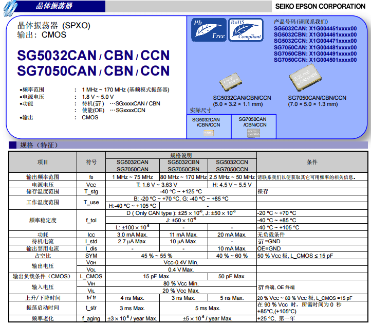 SG5032CCN系列,SG5032CCN規(guī)格,SG5032CCN