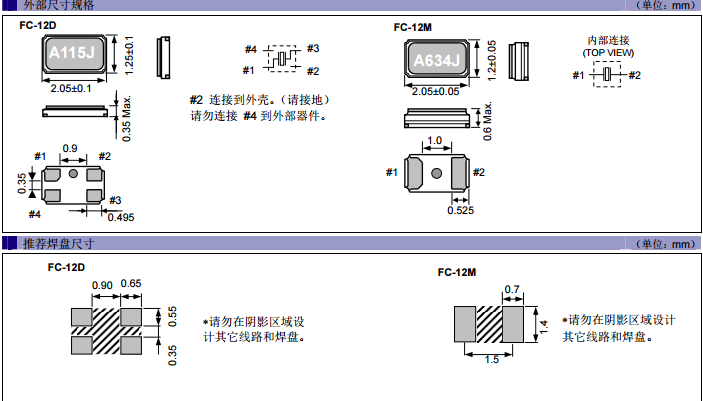 市場上最熱門的FC-12M有以下三種:FC-12M 12.5PF 32.768K,F(xiàn)C-12M 32.768KHZ 7PF,F(xiàn)C-12M 32.768kHz 6pF,FC-12M已經(jīng)不能算是最新的無源晶振,但是依然廣泛運用在很多便攜式電子產(chǎn)品上,那么這是為什么呢?因為市場上需求量很大的通常是32.768KHz,小尺寸的無源晶振,而FC-12M體積為2.0mm*1.2mm,所以統(tǒng)稱為2012無源晶振FC-12M,有一說一,目前國內(nèi)市場在制作這樣的32.768K小尺寸晶振上技術(shù)確實還有欠缺,因此采購時一般還是要進口晶振,而在32.768k晶振上,愛普生晶振是絕對的佼佼者,這個無需多言,大家自行百度,真金不怕火煉,南山電子作為愛普生晶振官方授權(quán)中國地區(qū)核心代理商,長期供應(yīng)FC-12M現(xiàn)貨,值得注意的是,很多人來找我們的客戶經(jīng)常犯一個錯誤,就是當(dāng)FC-12D缺貨的時候,直接想當(dāng)然購買FC-12M替換,雖然他們參數(shù)大致相同,而且溫度范圍都可以達到-40℃~+85℃,但是FC12D比FC-12M更薄,而且FC-12M是兩腳的,F(xiàn)C-12D是四腳金屬面,下面給大家看下這兩者規(guī)格書對比: