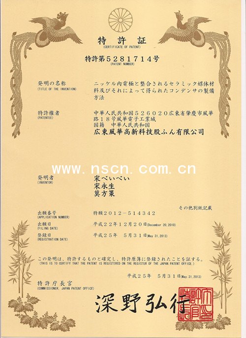 風(fēng)華高科在日本申請(qǐng)首件陶瓷貼片電容新材料制造專利