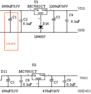 電容會有充電、放電的過程。這樣,整流后的信號將產(chǎn)生如下變化。變?yōu)檫B續(xù)的更接近 直流的電壓。C5是對D13(485繞組)整流后的波形進行濾波。C3、C7分別對U1、U2輸出的電壓進行濾波:使波形更 穩(wěn)定。