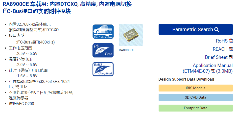 用于車載T-BOX等高精度計(jì)時(shí)的汽車級(jí)時(shí)鐘模塊RTC:RA8900CE