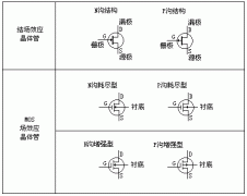 場效應晶體管可分為結場效應晶體管和MOS場效應晶體管。而MOS場效應晶體管又分為N溝耗盡型和增強型;P溝耗盡型和增強型四大類。見下圖。