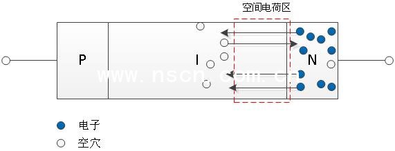 相較之下,P區(qū)與I區(qū)之間的載流子擴(kuò)散很小,幾乎可以忽略。所以在零偏置電壓的狀態(tài)下,I區(qū)與N區(qū)間的空間電荷區(qū)的載流子幾乎被耗盡,成高阻抗?fàn)顟B(tài)。I區(qū)與P區(qū)載流子移動(dòng)很少。整體呈高阻狀態(tài)。